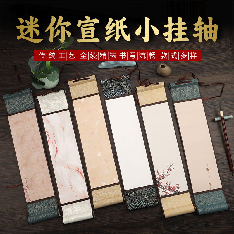 ミニ小巻物書道空白書道掛け絵空白宣紙書斎小掛け軸ワックス染め散金半生半熟