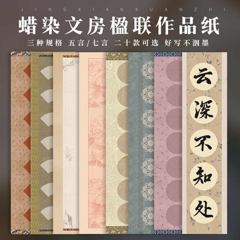 微噴蝋染宣紙五言七言空白対聯専用紙半生半熟毛筆書道作品紙ソフトペン