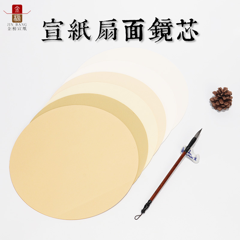 パステル団扇画芯33cm円形空白宣紙鏡芯レンズ半生熟書道創作専用作品紙