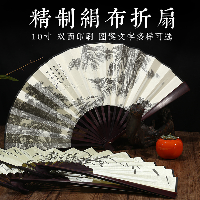 絹布両面折りたたみ扇子 10inch 中国風レトロ扇子 書道創作 広告扇子 扇子卸売 折りたたみ竹扇子