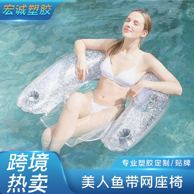 メーカープロモーション新商品インフレータブルマーメイドu型シートネットレッド水遊びフローティングスパンコールハンモックカップ座フローティングベッド