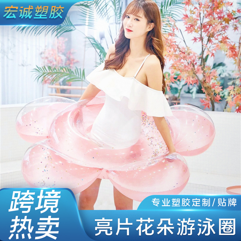 クロスボーダーpvcインフレータブル透明スイミングリングクリエイティブ新品ピンク花スパンコールフローティングスイミングリング