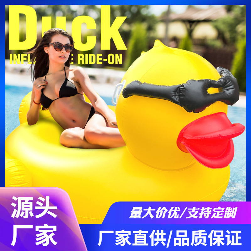スポット卸売り空気入り大黄鴨浮床サングラスアヒルが水上浮きプールに乗って水PVCを遊ぶ