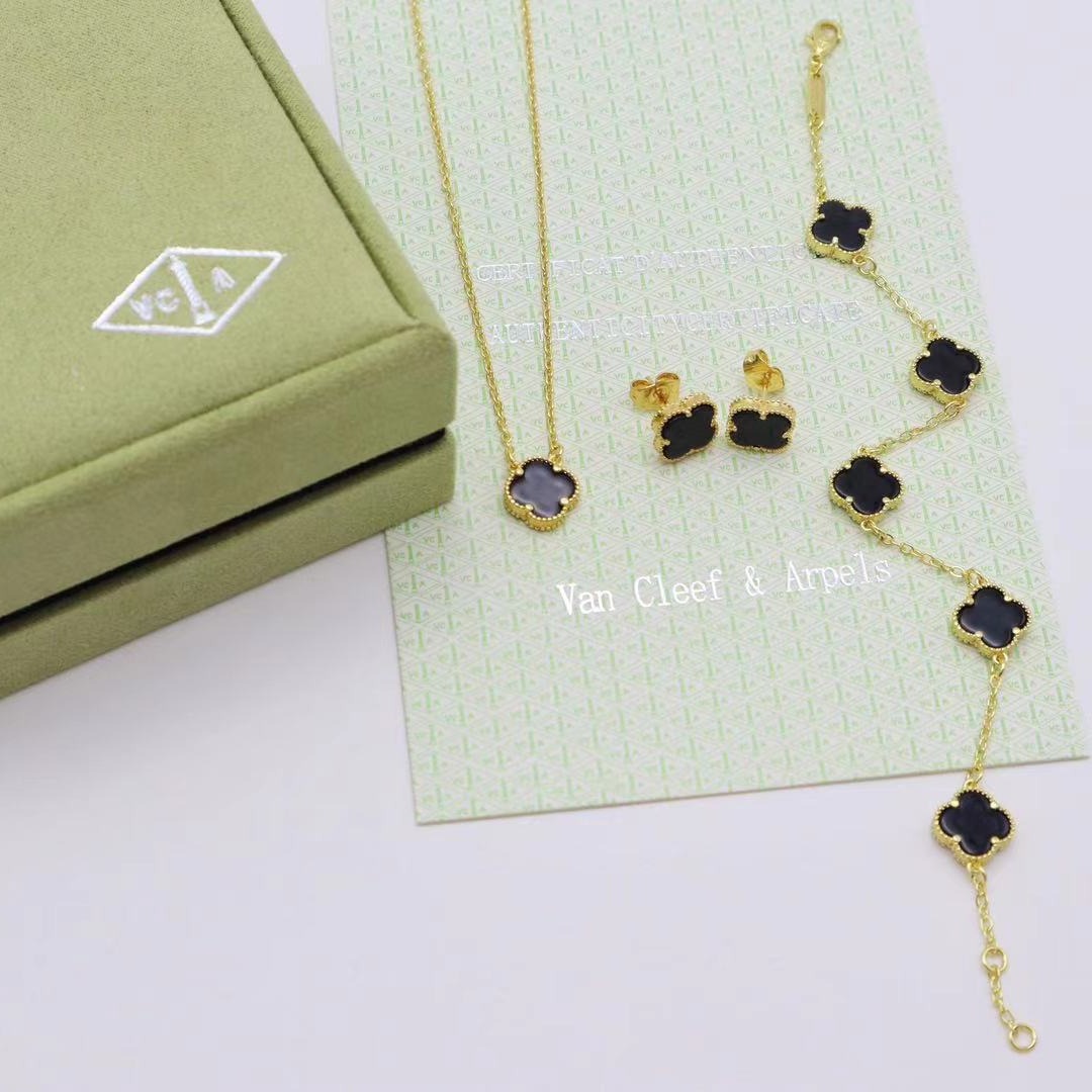 起爆金2025年に四つ葉のクローバーネックレスのイヤリングを入れた指輪セット欧米のシンプルな鎖鎖工場のロット