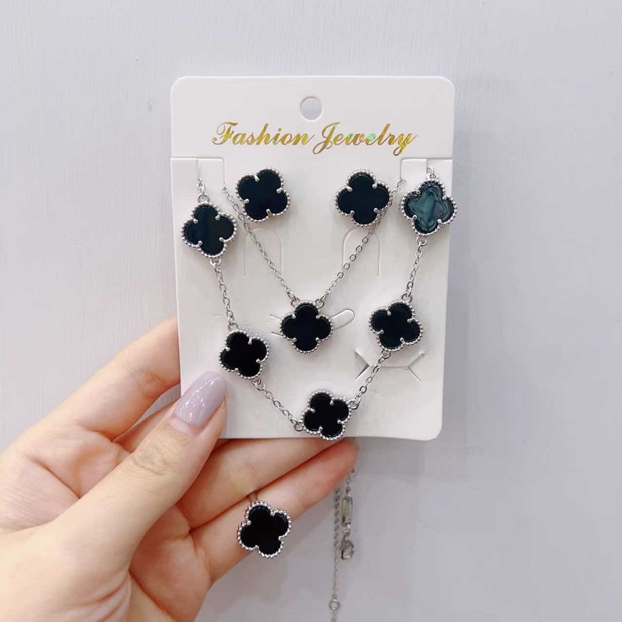 起爆ファッション銀色ドーパミン幸運四葉草ブレスレットネックレスイヤリング指輪セット生放送工場卸売り