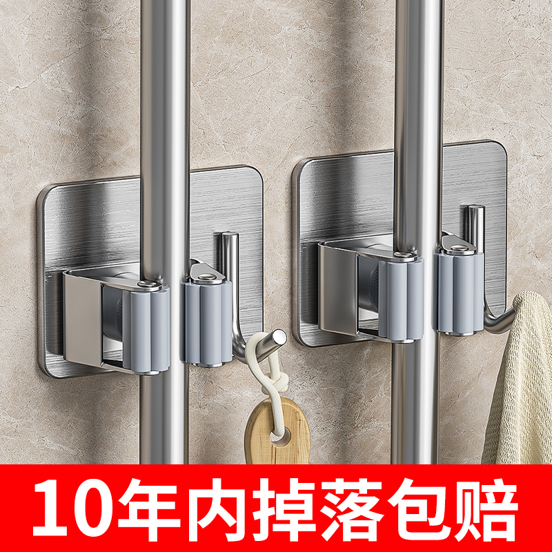モップ壁掛けクリップ穴なしトイレ粘着フック強力ビスコースフック神器ステンレス掛けほうきホルダー