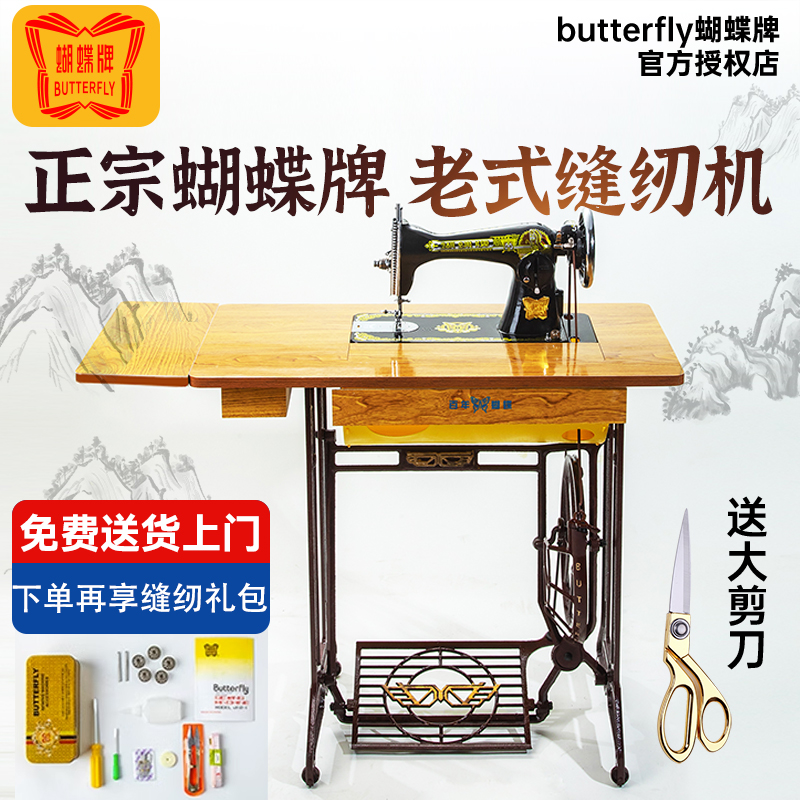本格的な上海の蝶のブランドの古いミシンの家庭用の足は台式の電動の裁縫機の頭を踏んで厚い服の車を食べます。
