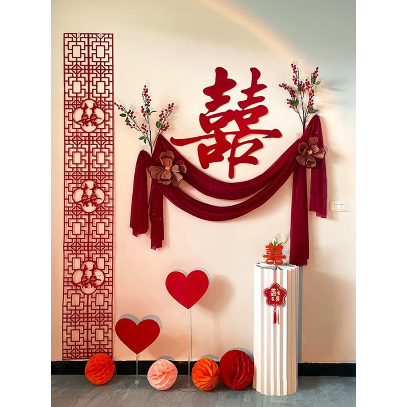 結婚階段手すり背景壁面喜字装飾男女側農村自営住宅庭結婚式配置セット