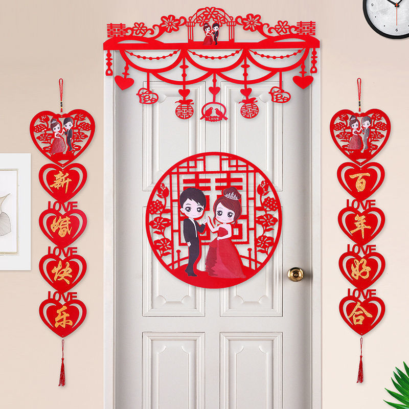 結婚部屋の装飾品の結婚部屋の対聯は喜字のスーツを配置します。