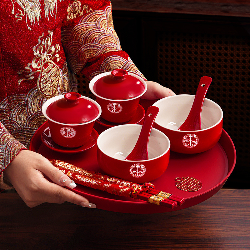 結婚した女性の嫁入り花嫁は赤い喜碗に嫁いで結婚します。