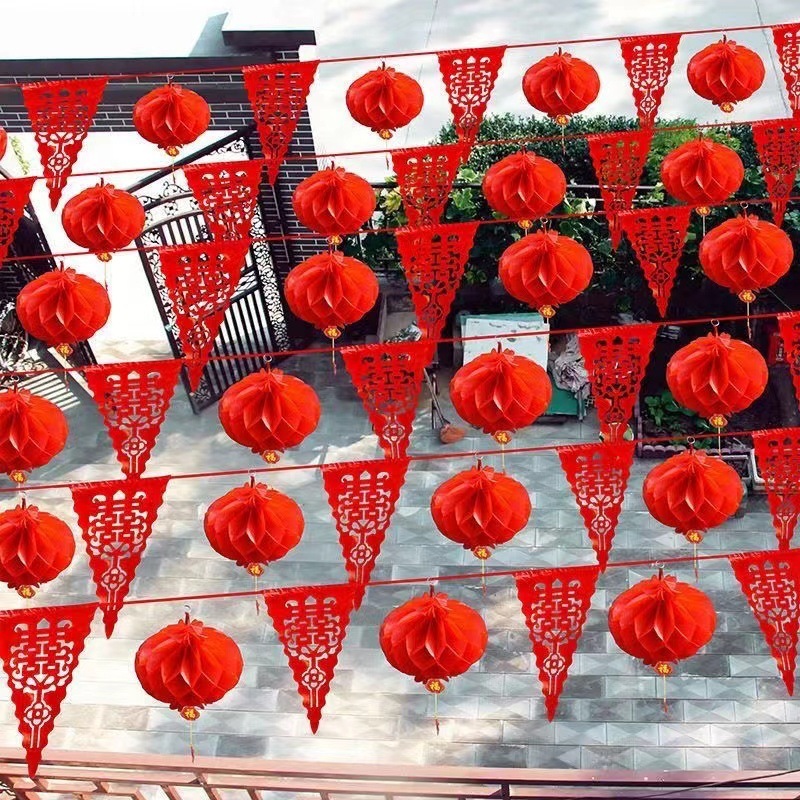 結婚装飾彩旗提灯農村庭装飾屋外結婚式シーン配置花引き屋外結婚祝い開業