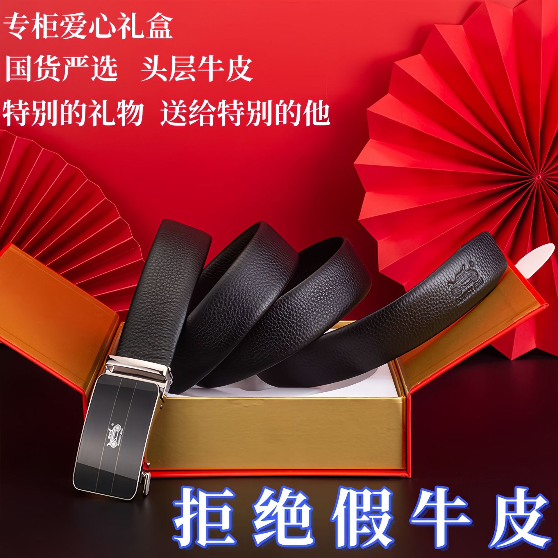 クラシックカー第一層牛革自動バックルベルトビジネスカジュアルギフトボックス本革メンズベルトハイエンドズボンベルト