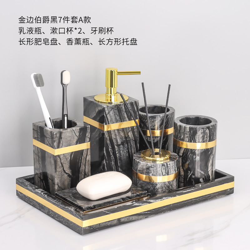 天然大理石トイレ浴室用品洗面セット軽贅沢風呂セット歯ブラシホルダーうがいコップトレー