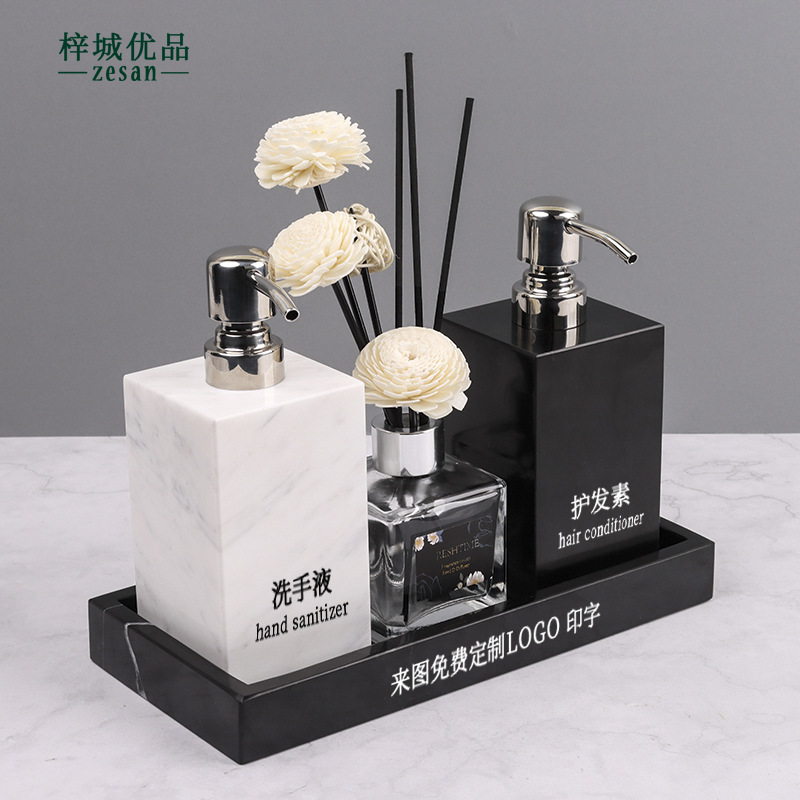 天然大理石手洗い液泡立て瓶ホテル高級浴室押し瓶ロゴ北欧分装空瓶セット