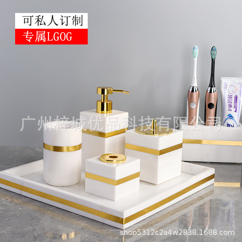 高級大理石洗面セット北欧軽贅沢浴室用品手洗い液瓶トレイティッシュケースセット