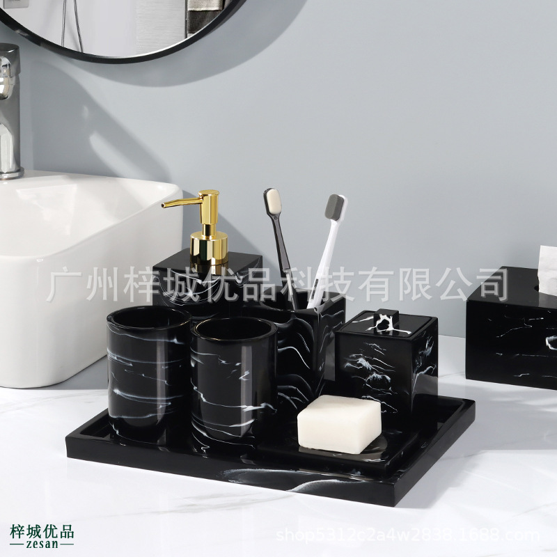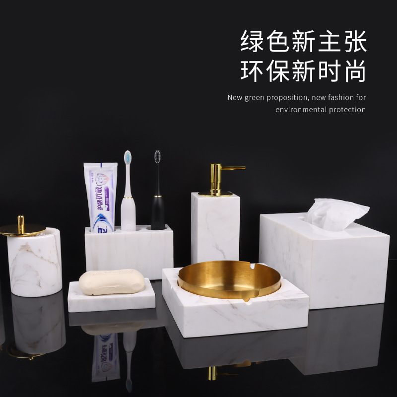 現代の軽豪華大理石五点セット北欧風呂洗面セット高級風呂洗面コップトイレ置物