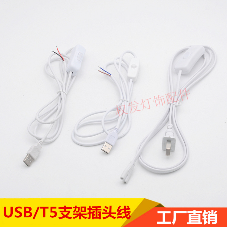 T5プラグボタンスイッチ線usbプラグ線部品台灯線制御スイッチ電線灯具照明部品