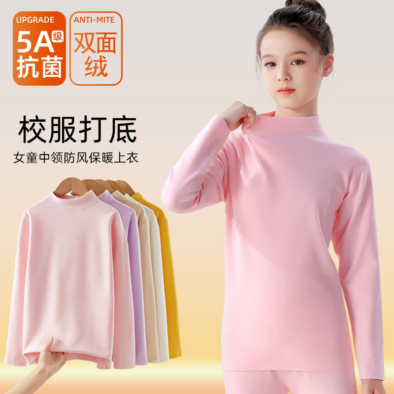 新しい男の子の半高襟の秋冬の上着の男の子の保温の底のシャツの秋の服の両面の絨毛の秋冬の下着の卸売り工場