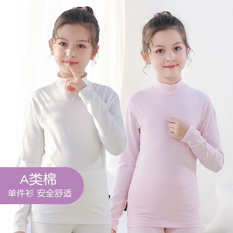 女の子の大きい子供の長袖の底のシャツの子供の秋の服の上着の1枚の純綿の中で春と秋の薄い金の女の子の保温の下着を掛けます。