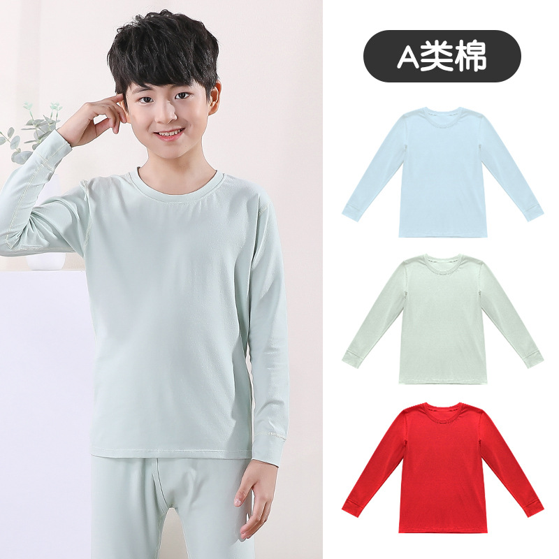 男の子の純色の底のシャツの単品の長袖のシャツの春秋の薄いタイプの学生のa類の綿の家庭服の下着の子供の秋の服