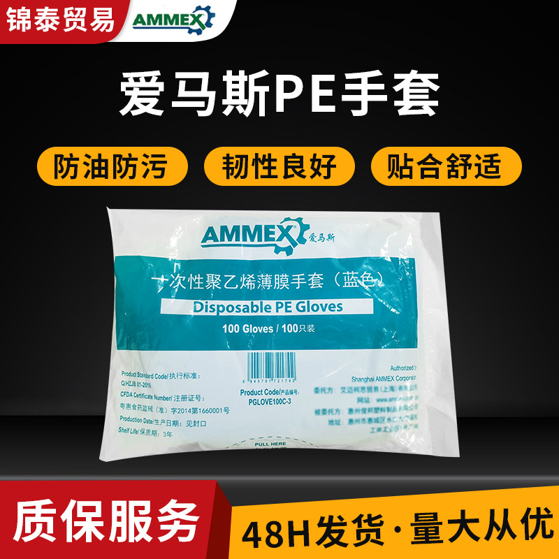 使い捨てpe検査手袋卸売りフィルム厚手焙煎家事労働保険歯科美容紋刺繍透明青
