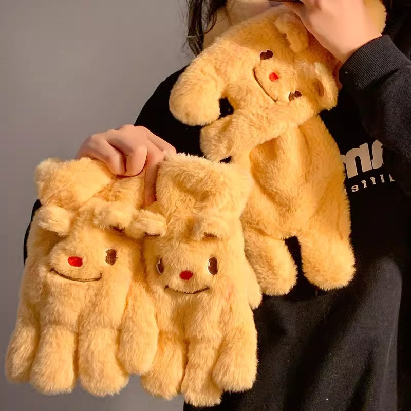 バターベアハーフフィンガーフリップアップぬいぐるみ手袋 女性用 秋冬用 暖かい 学生用 サイクリング用 防寒 オタムリ毛 厚手