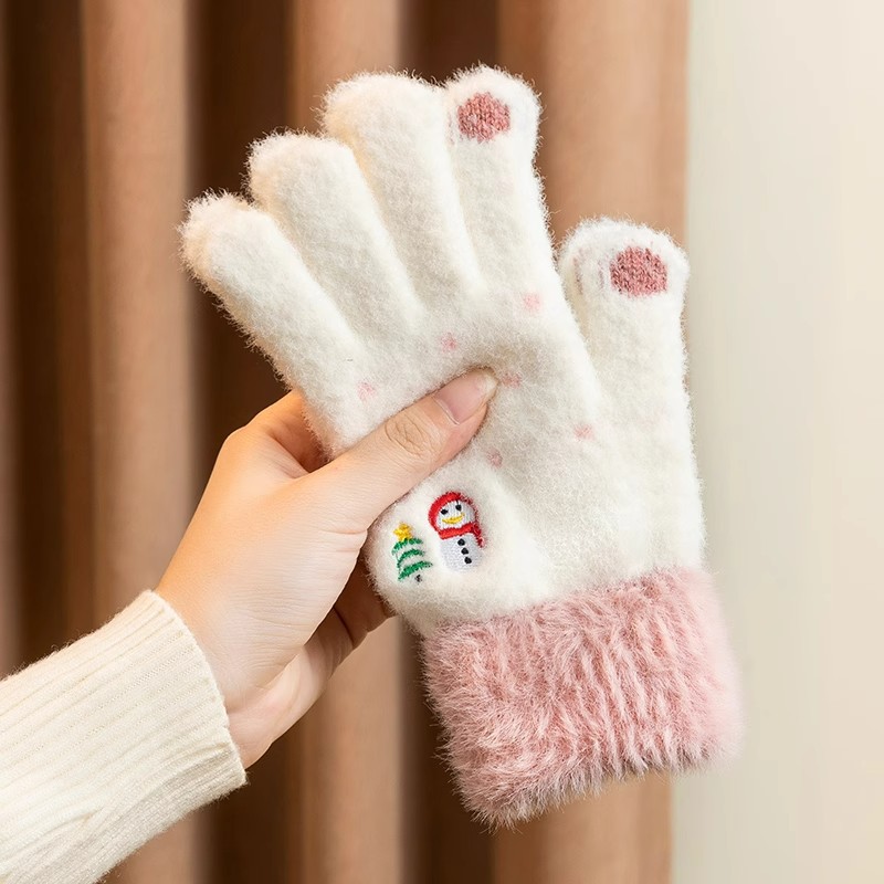 韓国風ニット手袋 冬用 サイクリング 防寒 女の子向け 可愛い タッチスクリーン対応 防寒 雪だるま柄 ウール手袋