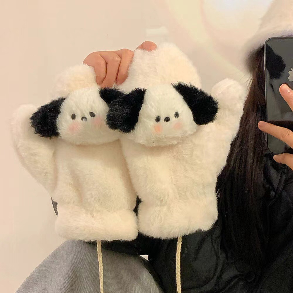 子犬のぬいぐるみの手袋の女性の冬の韓国版のかわいい防寒とベルベットの厚い保温は首を掛けて学生の潮を指します。