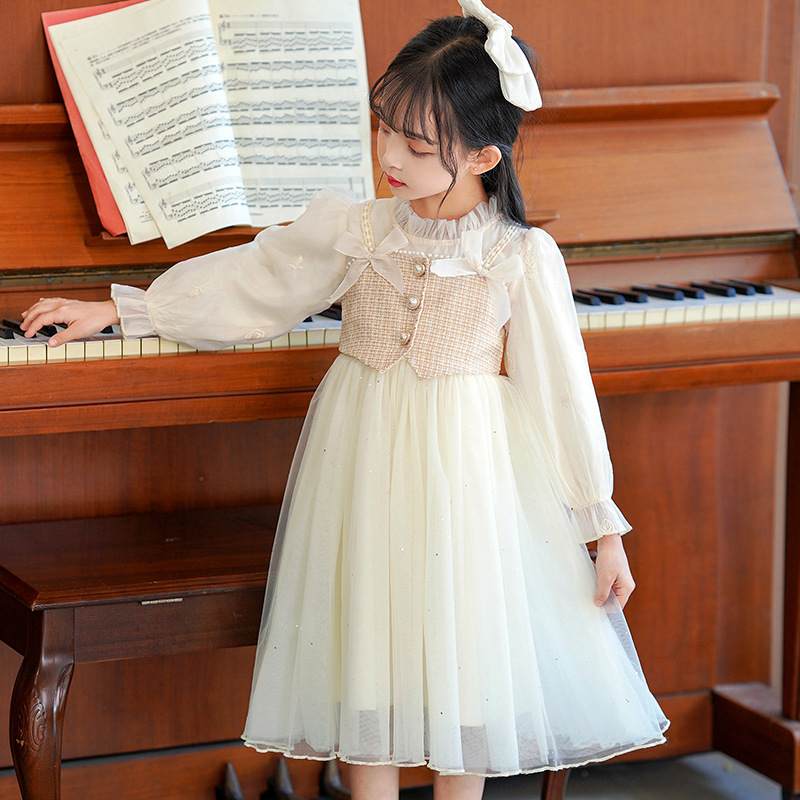 女の子のワンピース秋の新型の気質の小さい香風の長袖の王女のスカートの子供の春秋の蓬のスカートの誕生日のドレス