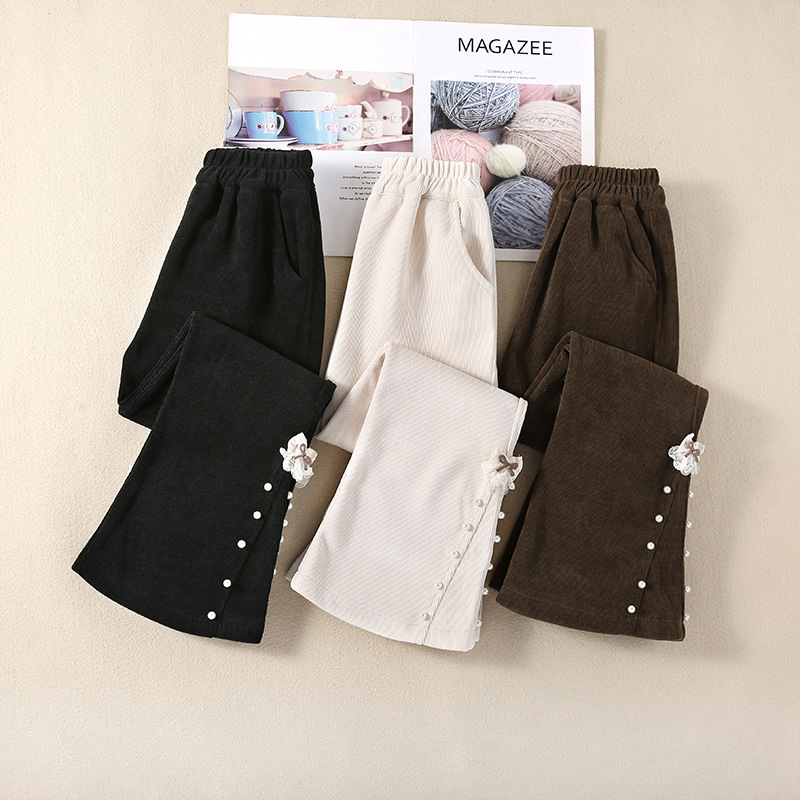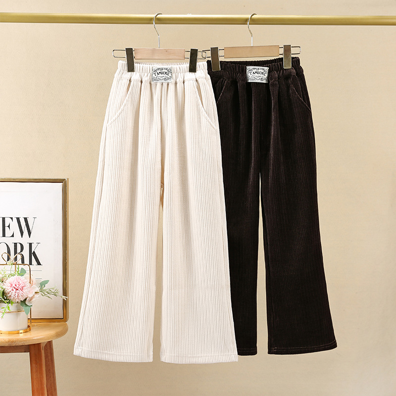 2024女の子のズボン秋冬とベルベットのワイドパンツの中の子供の外にカジュアルパンツを着ている冬のコーデュロイのストレートパンツ