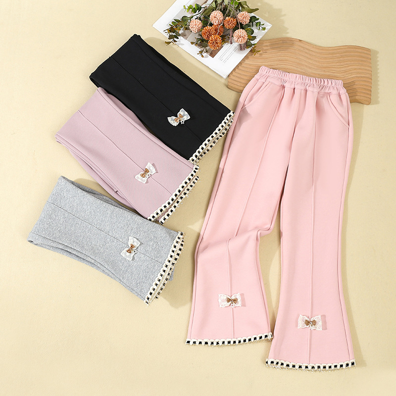女の子のベルベットのズボンの秋冬モデルの中で子供がやせているトランペットのズボン2024の新しい冬服の女の子のカジュアルなズボン