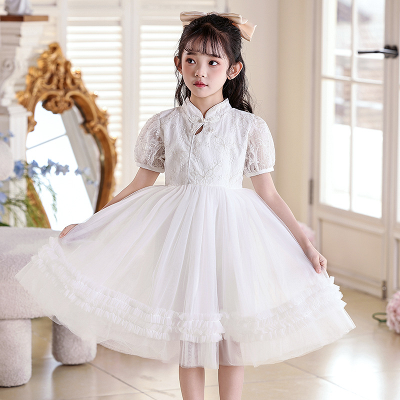女の子のワンピースの夏の新しい中国式の子供のチャイナドレスの王女のスカートの洋気の赤ちゃんの蓬蓬の紗のtuuスカート