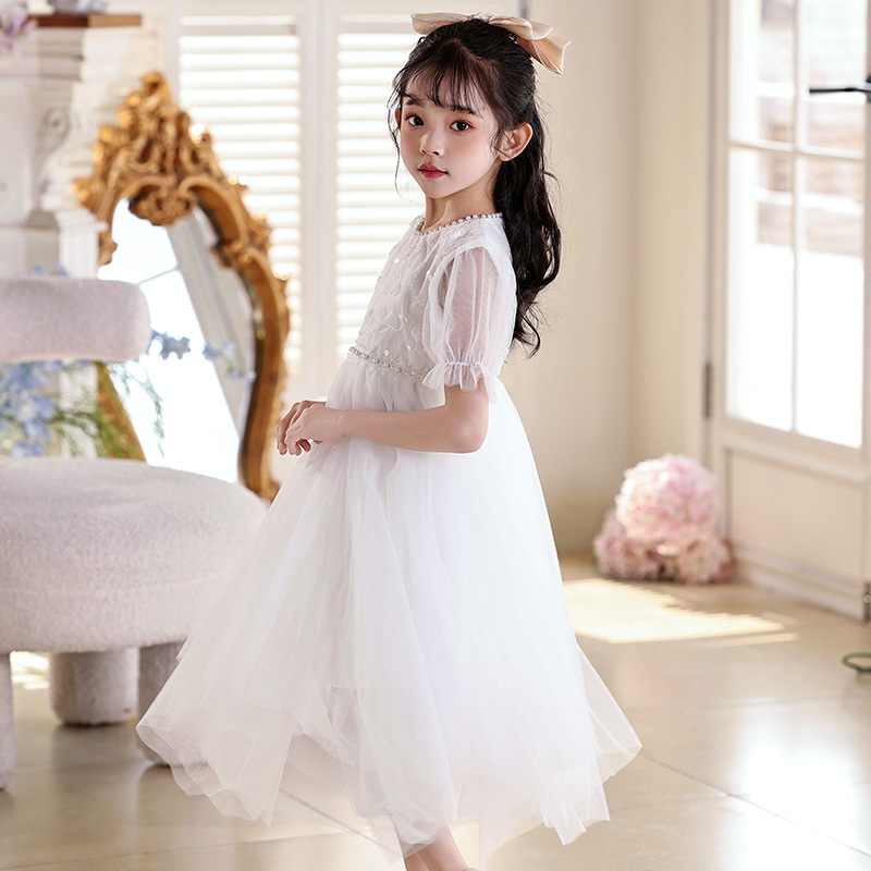 女の子プリンセススカート夏服半袖子供白いワンピース赤ちゃん六一節司会ドレスショードレススカート