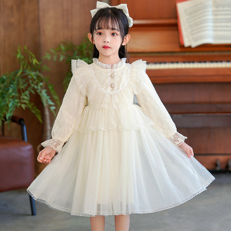 女の子のワンピースの秋の服の新型の子供の気質の王女のスカートの女の子のレースの蓬蓬の糸の誕生日のドレスのスカート