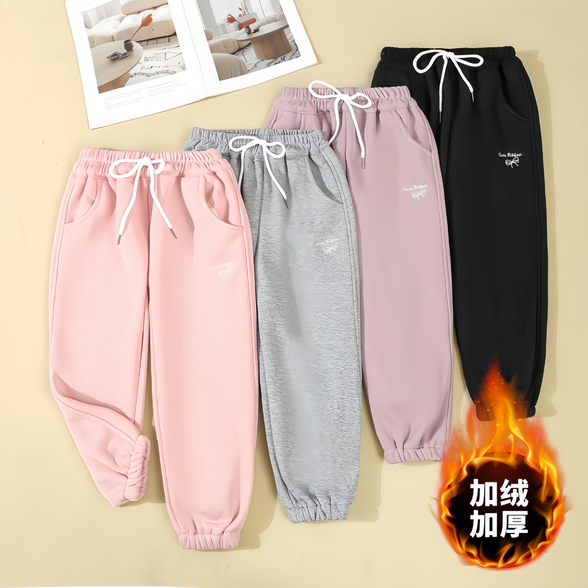 女の子のズボン2024秋冬にベルベットの新商品の小香風釘珠カジュアルパンツの中の大童洋気韓版スピーカーパンツ