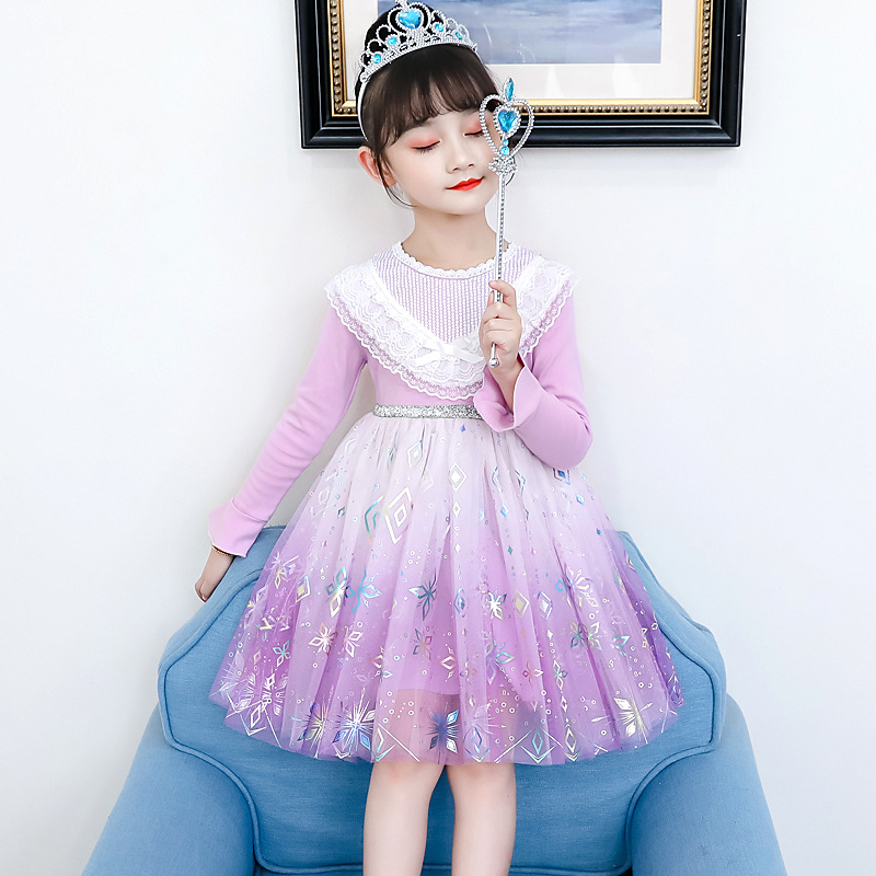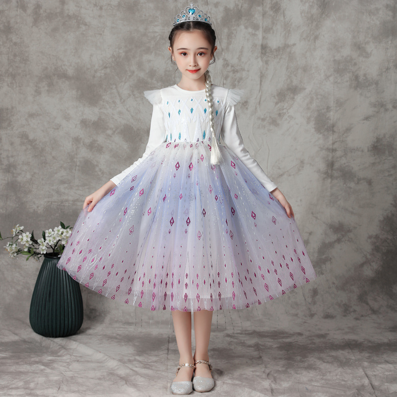 氷雪の女王の王女のスカートの秋の服装の新型の愛莎の女の子のワンピースの甘い白色の長いネットの紗の蓬のスカート
