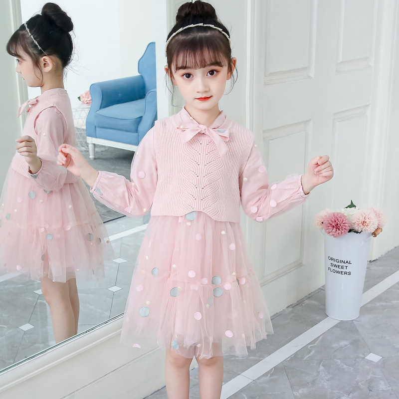 女の子のワンピース秋冬の新型の洋気の女の子の蓬蓬の糸とお姫様のスカートの子供の新年の公演のドレス