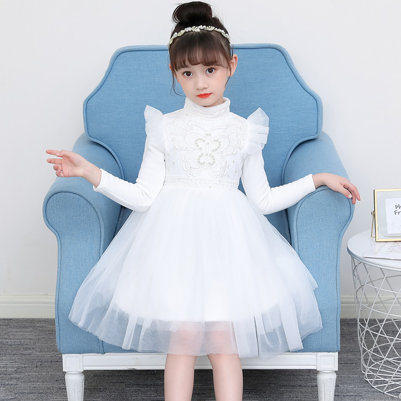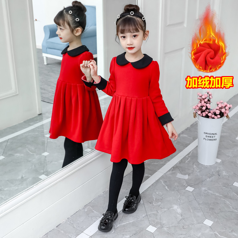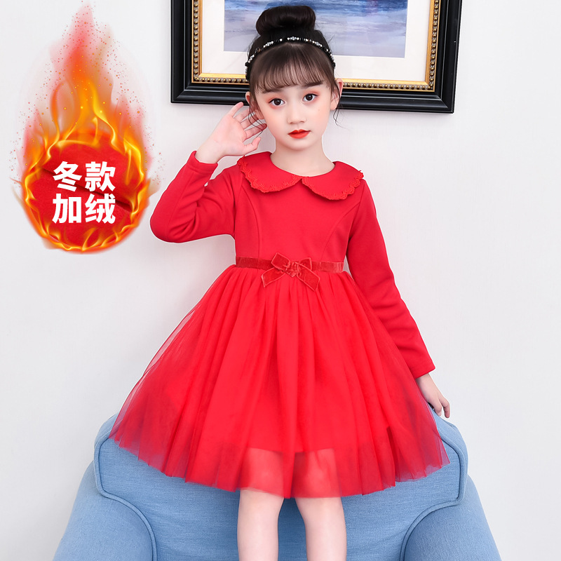 子供服の新型の女の子のワンピースは冬にベルベットして、韓国版の子供の襟の王女のスカートの女の子の蓬蓬蓬紗のスカートを厚くします。