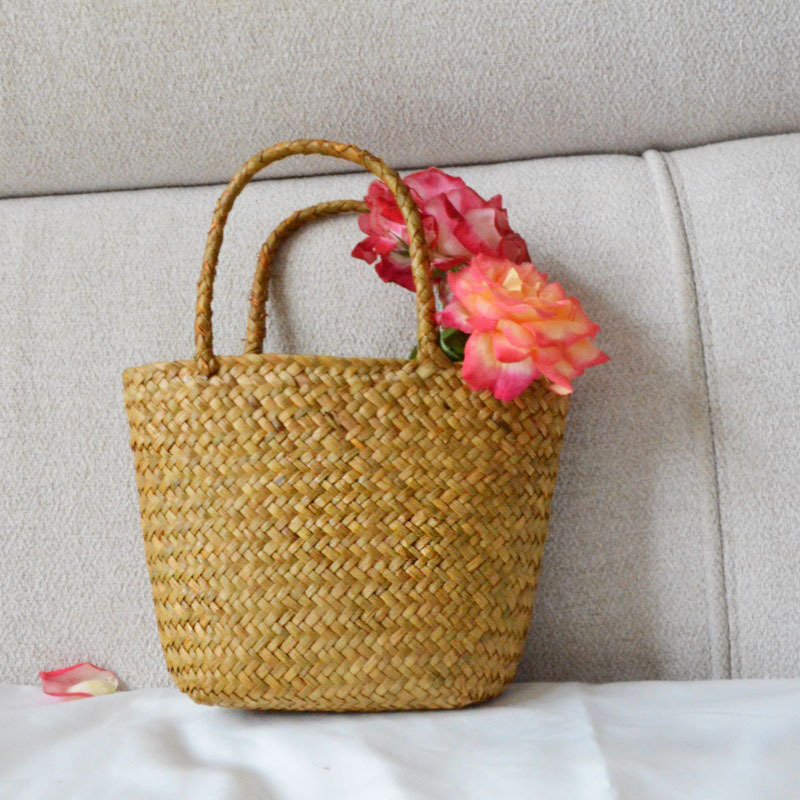 新商品ストレートファッションシンプル水草ハンドバッグレディース韓風小衆草編みバッグピクニック果物手提げかご
