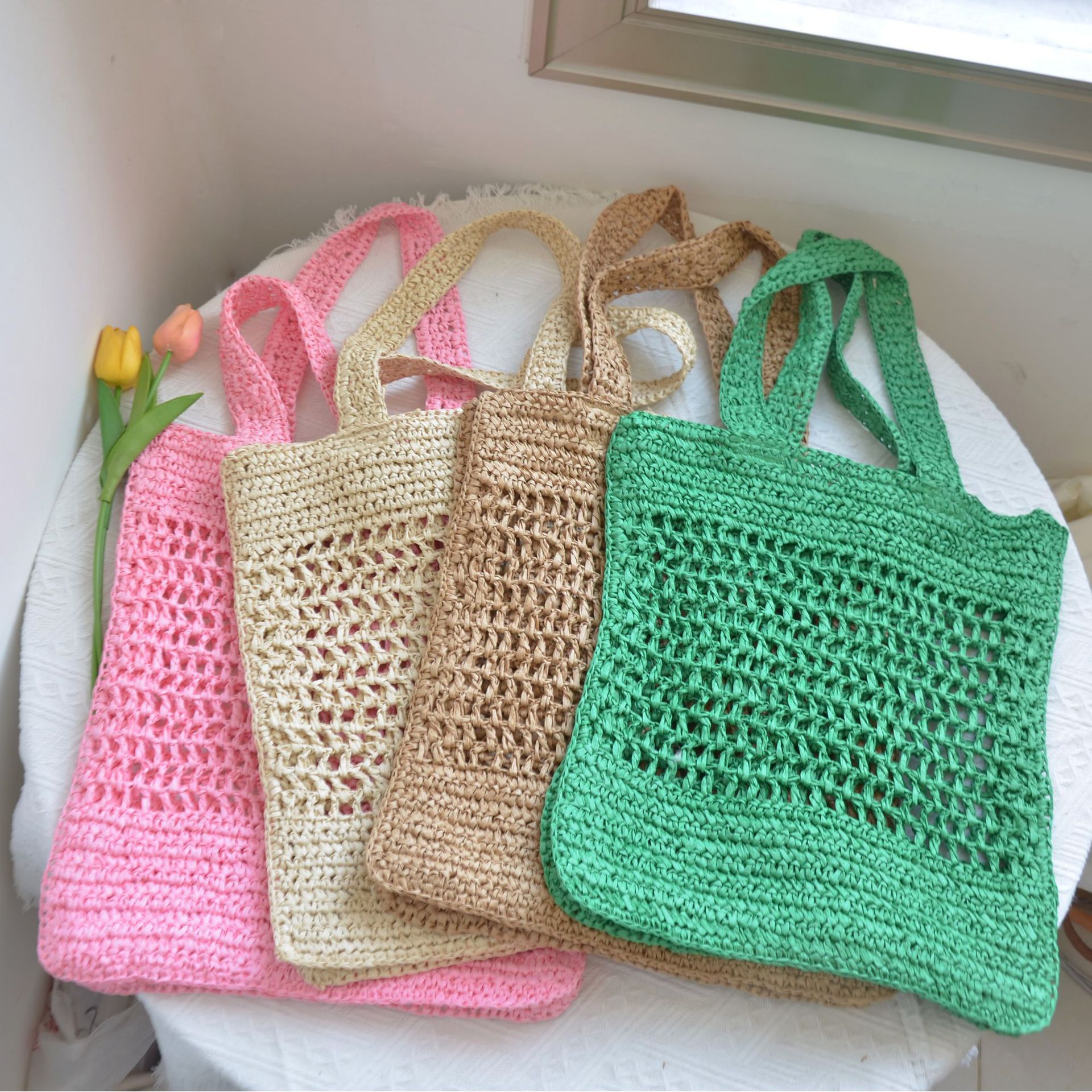カラー透かし彫りシングル肩草編みバッグ新型ins風手提げ編み漁網女性バッグファッションファッションビーチバッグ