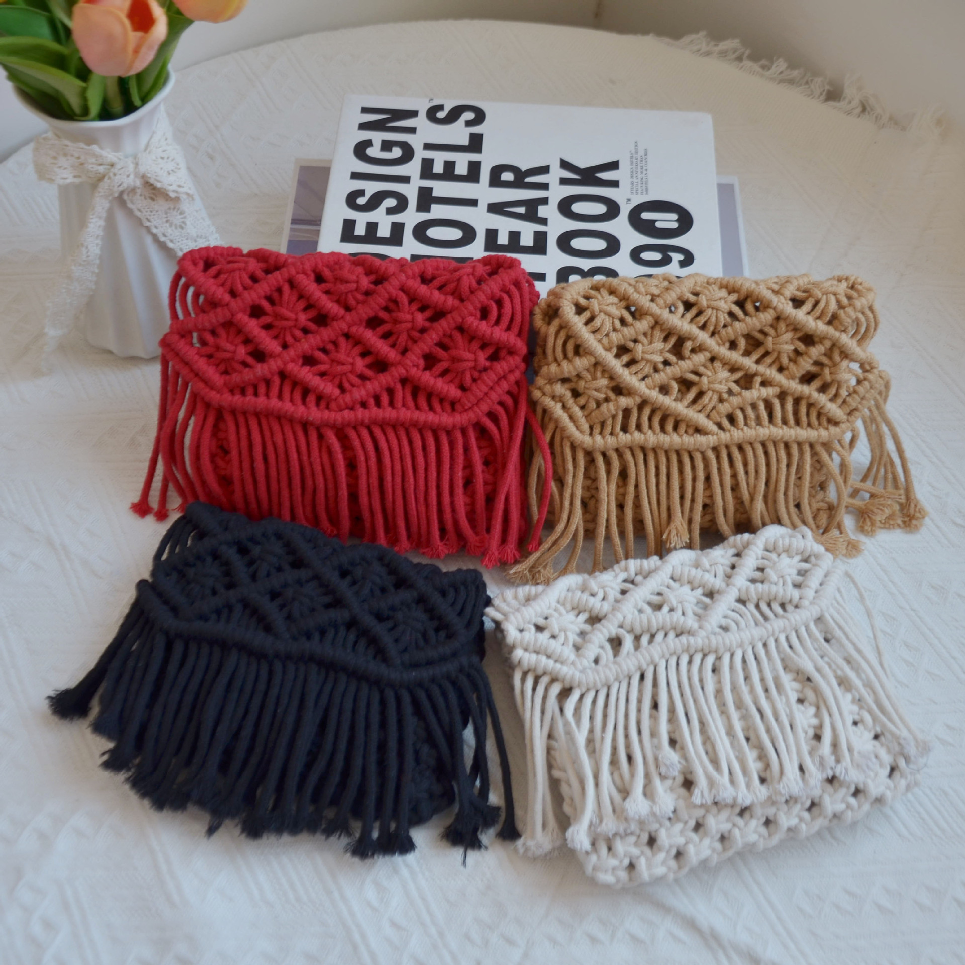 新型ins綿紐純手編みバッグファッション復古シンプル斜めに女性バッグ工場にまたがります。