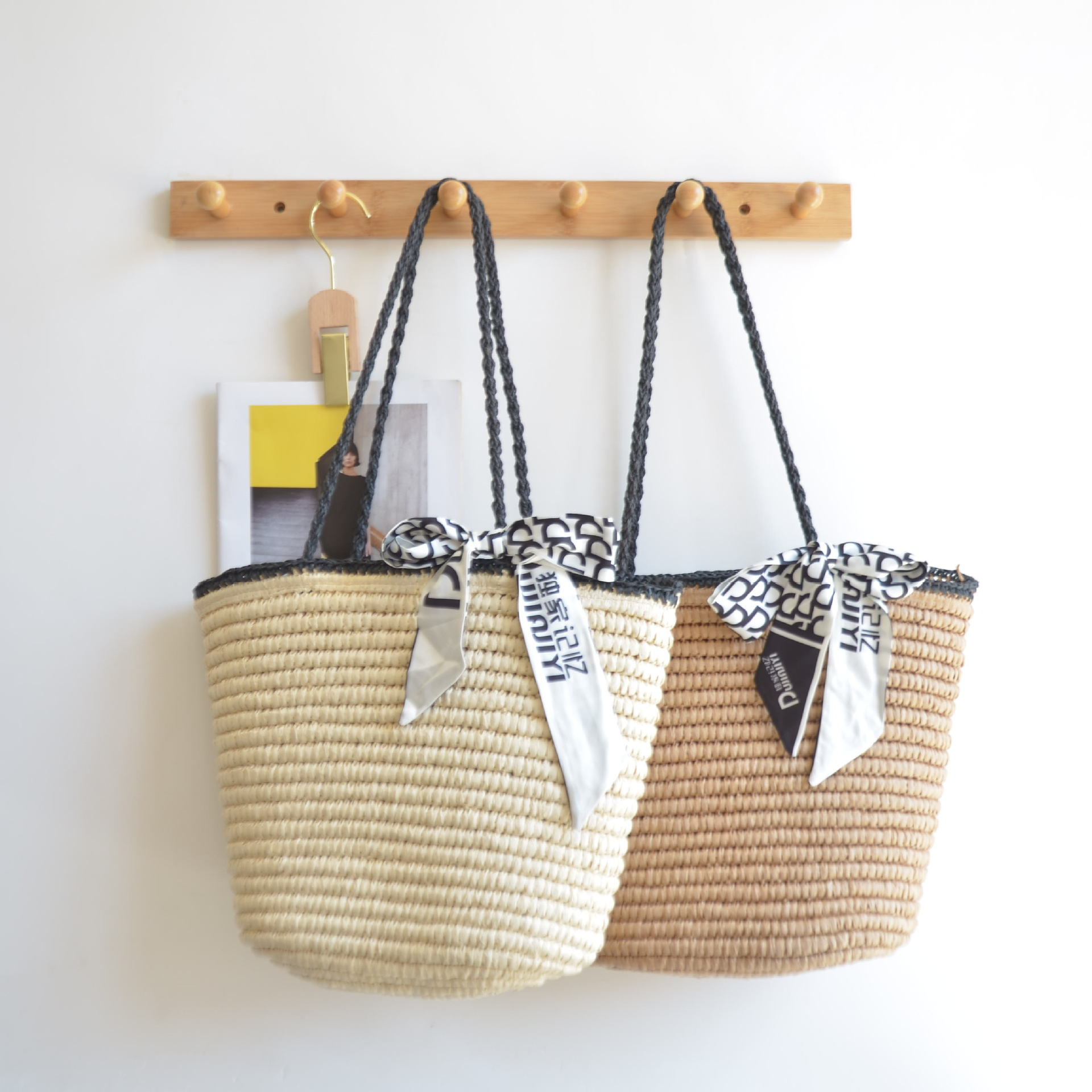 フランス式手提げ草包編みバッグ手編みレトロ草編みバッグ海辺休暇ビーチバッグ女性バッグ