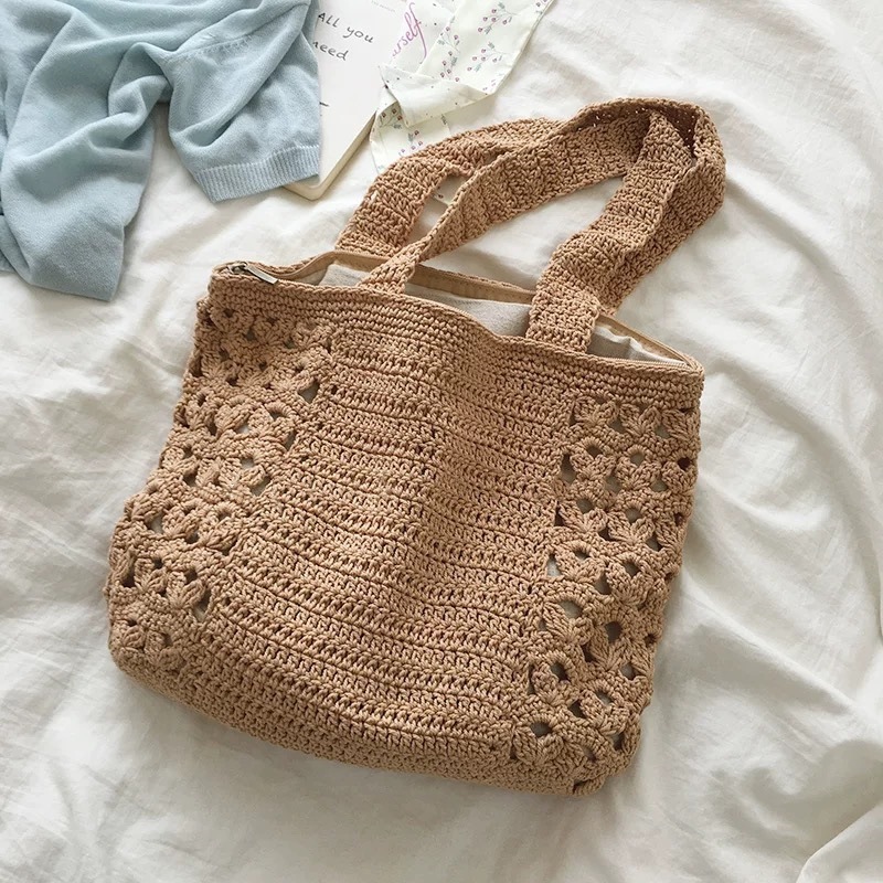 高級感のある夏のニットは休暇用ビーチバッグを持っています。