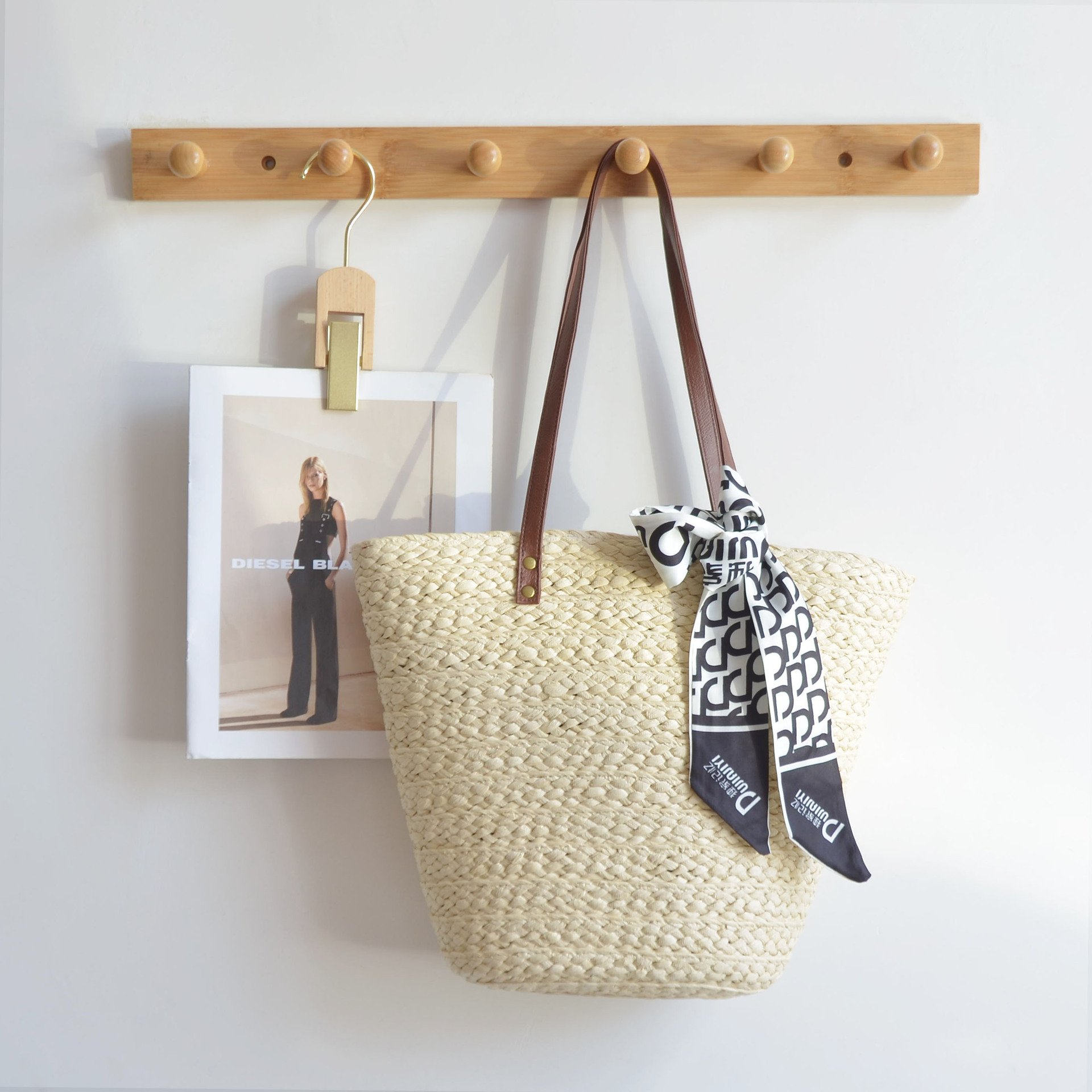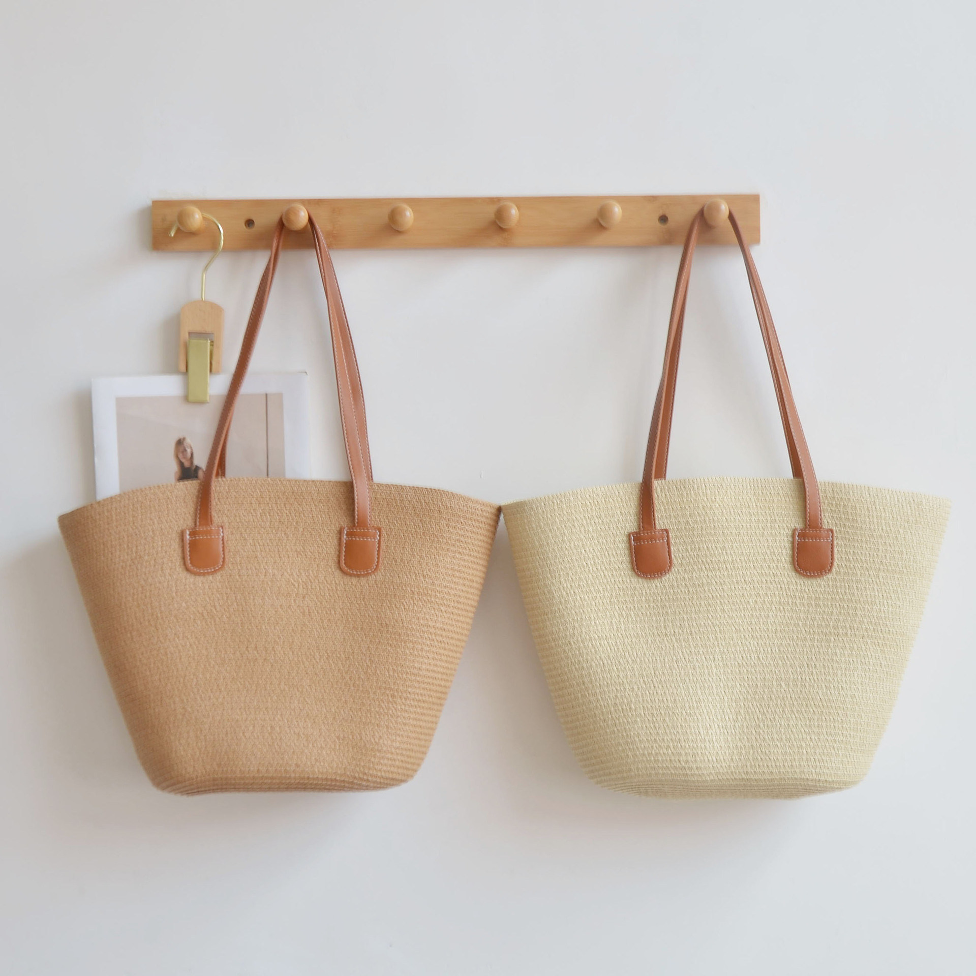 2021新型百合ファッション女性の肩が韓国版草編みの工芸ビーチ紙に斜めにまたがります。