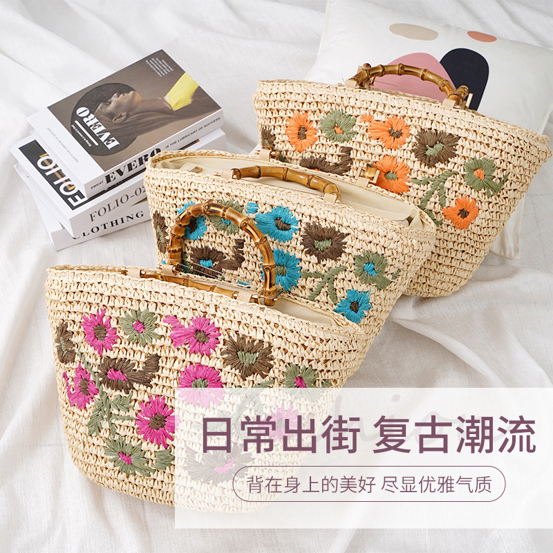 メーカー卸売りカラー小花包草編み包藤編み包単田園ハンドバッグ女包ファッションビーチハンドバッグ