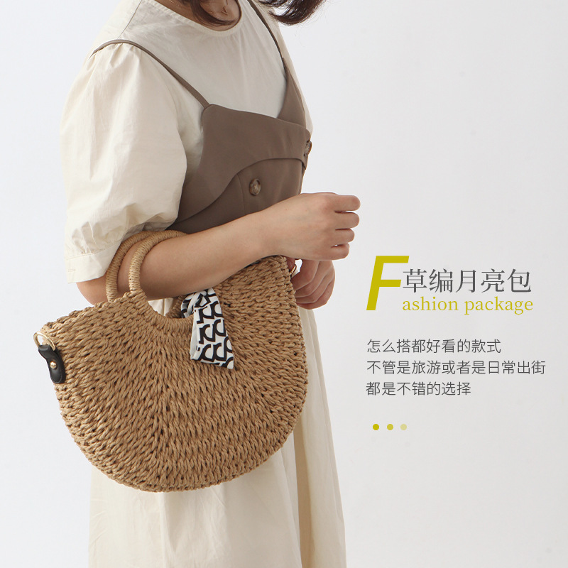 2021新型月亮包清新黄草草編み包み藤編み包み半円手提げ草編み包みビーチバッグ
