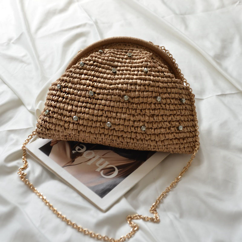 ファッション手織り餃子バッグ編みバッグ女性斜めショルダーバッグ半円新作ミニ紙ひもショルダーバッグビーチバッグ
