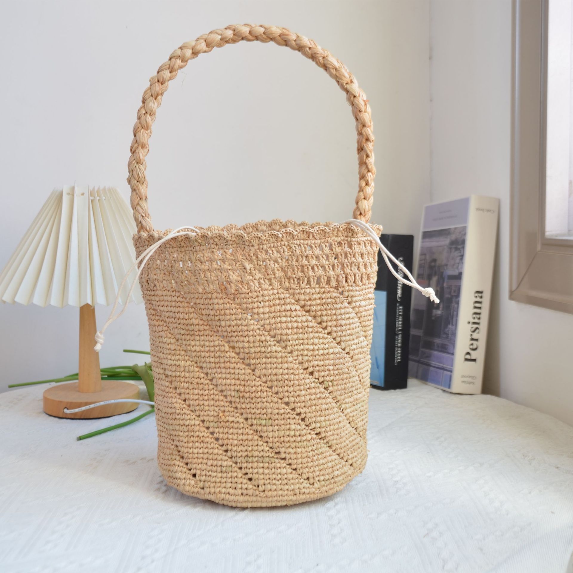 新品ストレート手編み水草バッグレディース斜めがけショルダーバッグハンドバッグ百合ビーチバッグ田園バッグ