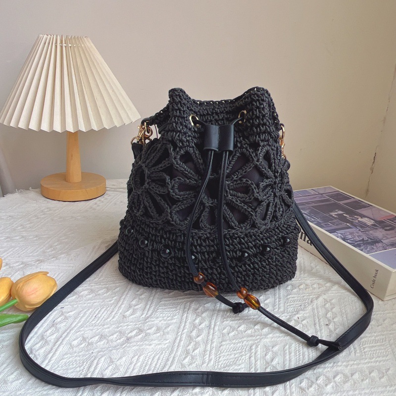 2024新型森系レトロ紙編包半円包白黒ビーチ包対外貿易大容量紙胚円斗