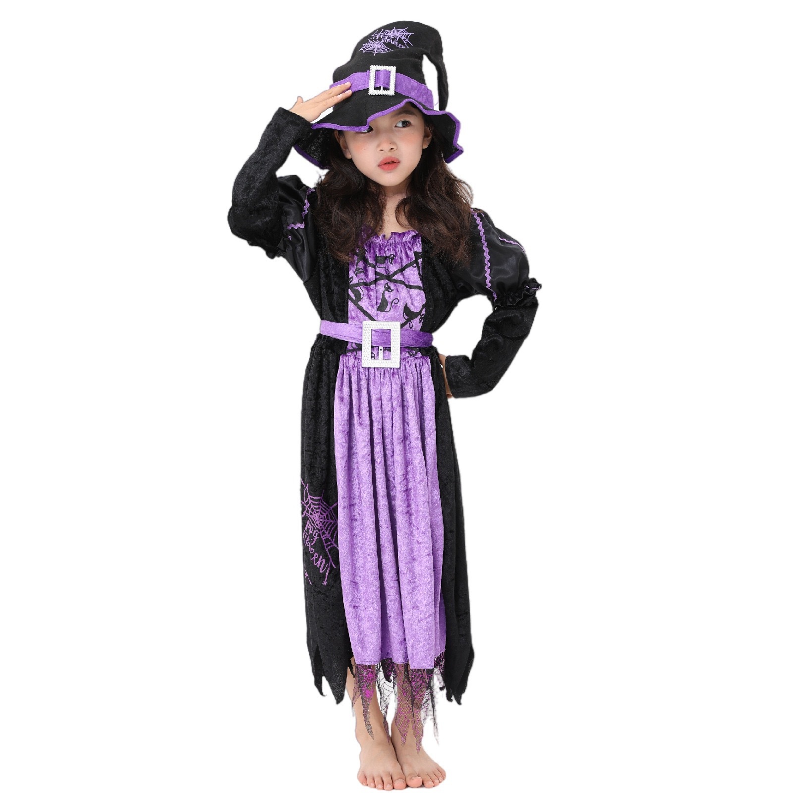 ヨーロッパとアメリカのハロウィンコスチューム子供用コスプレアニメコスチューム紫の魔女ロールプレイハロウィンコスチューム